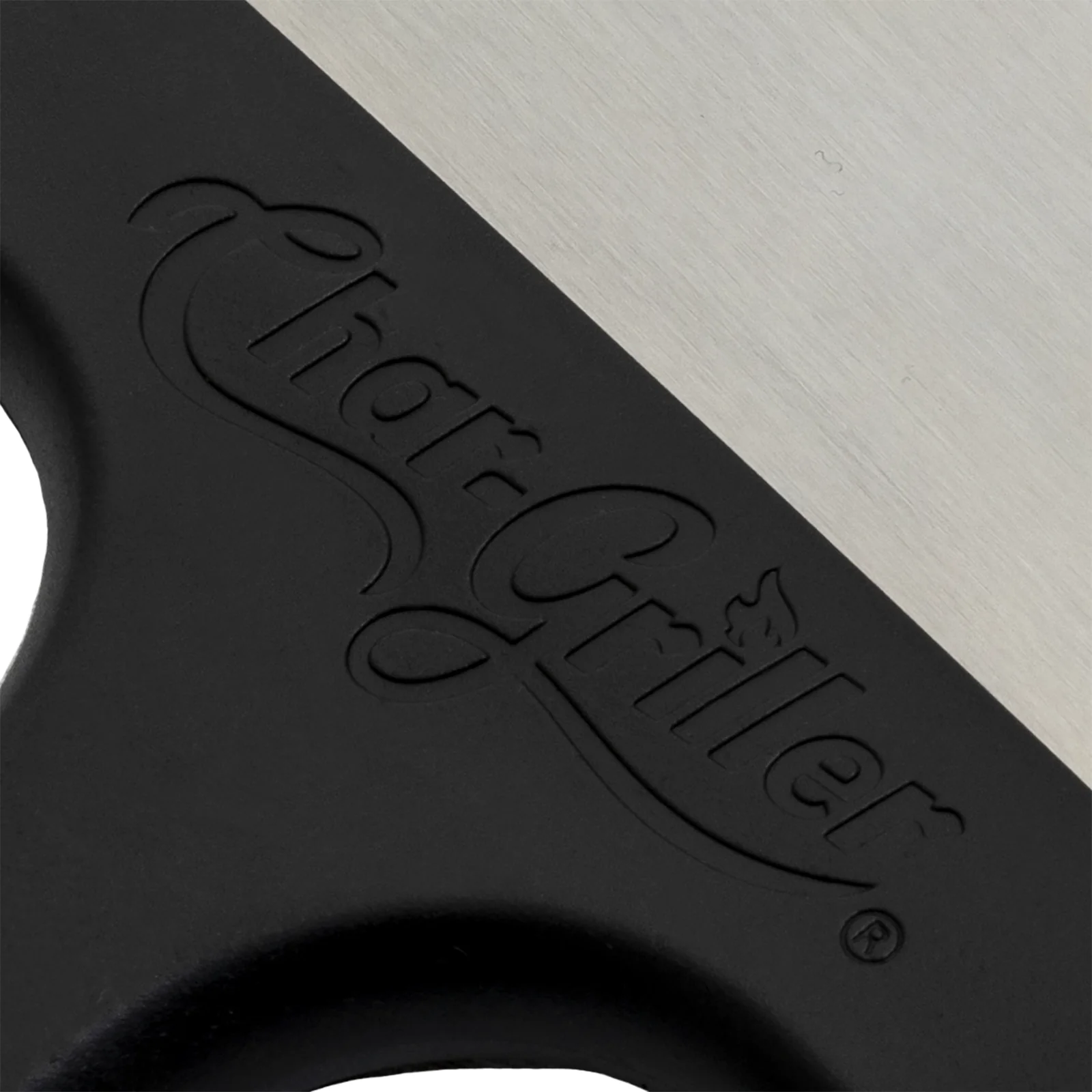 Keep the seasoning on your griddle's flat top in shape while scraping off any and all food residue effectively and efficiently with the Flat Iron Griddle Scraper.